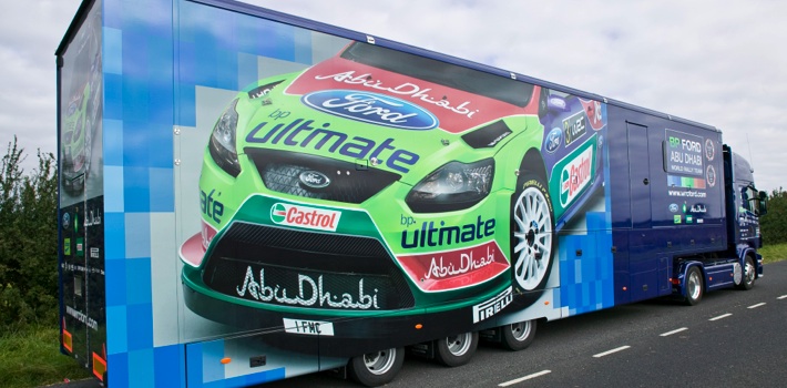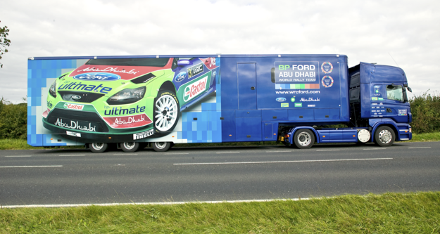 Bp Ford Abu Dhabi's fully kitted team transporter.